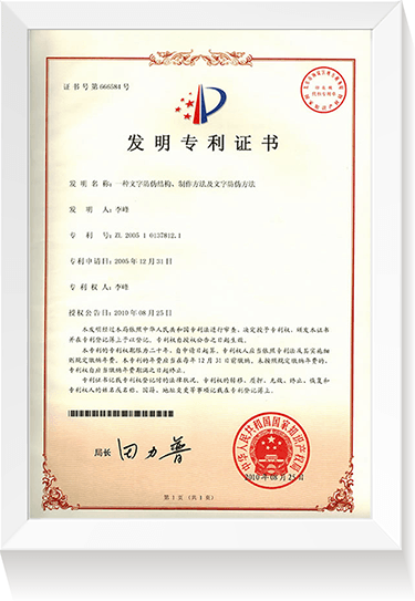 一.本公司研發(fā)的天鑒三維碼、真跡結(jié)構(gòu)防偽標(biāo)簽系列產(chǎn)品、真跡結(jié)構(gòu)防偽燙金膜類(lèi)系列產(chǎn)品均為專(zhuān)利產(chǎn)品,對(duì)任何侵犯我公司知識(shí)產(chǎn)權(quán)行為的企業(yè)與個(gè)人,本公司必將追究其法律責(zé)任!